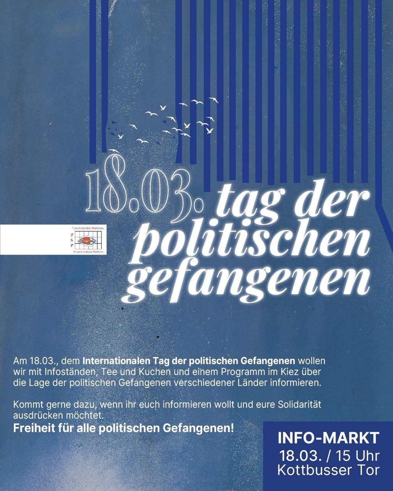 Am 18.03., dem Internationalen Tag der politischen Gefangenen, rufen wir alle fortschrittlichen Kräfte dazu auf ihre Solidarität zu bekunden und Freiheit für alle politischen Gefangenen zu fordern!