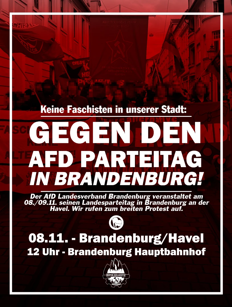 Die AfD Brandenburg veranstaltet am 8.11 und 9.11 ihren Landesparteitag in Brandenburg an der Havel.