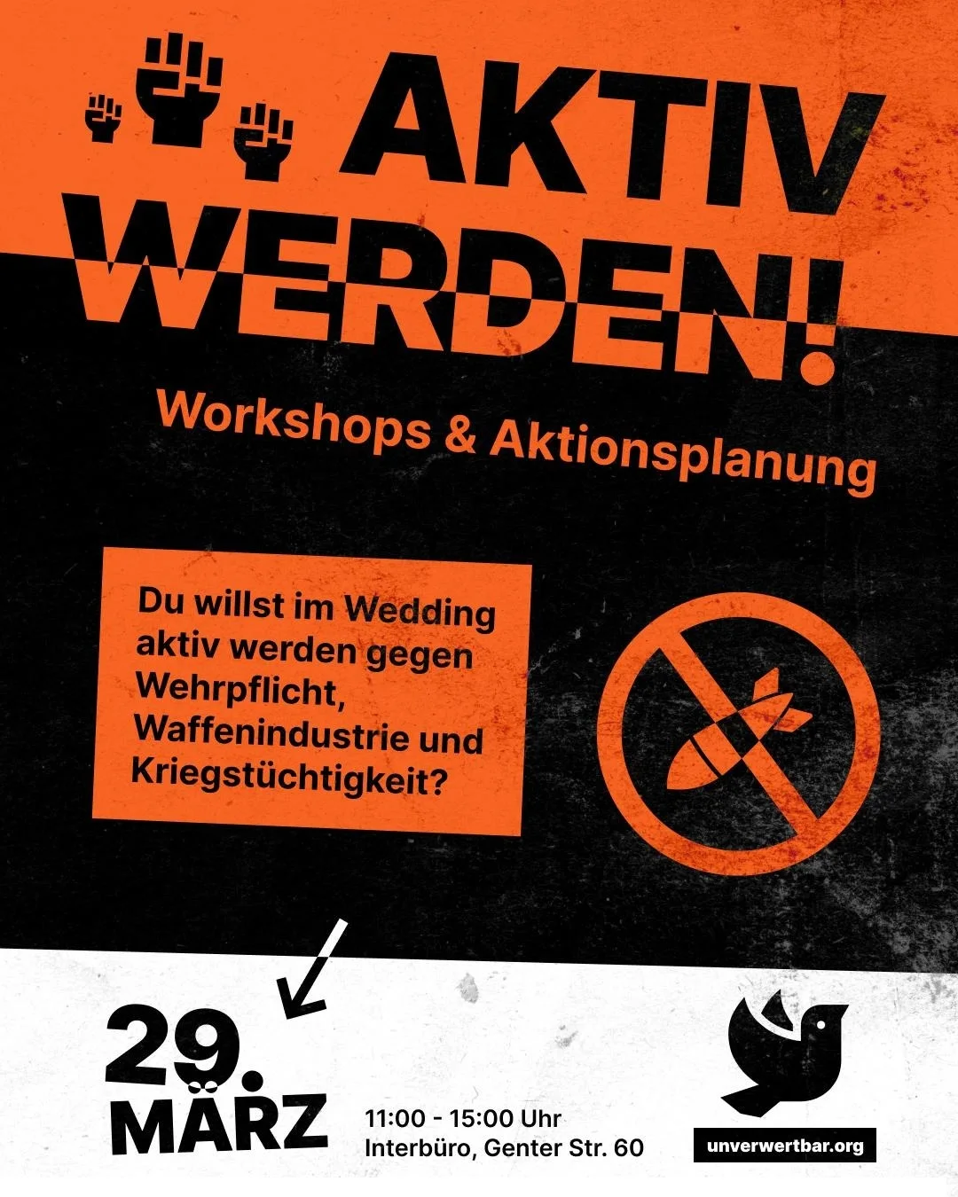 Du willst im Wedding aktiv werden gegen Wehrpflicht, Waffenindustrie und Kriegstüchtigkeit?