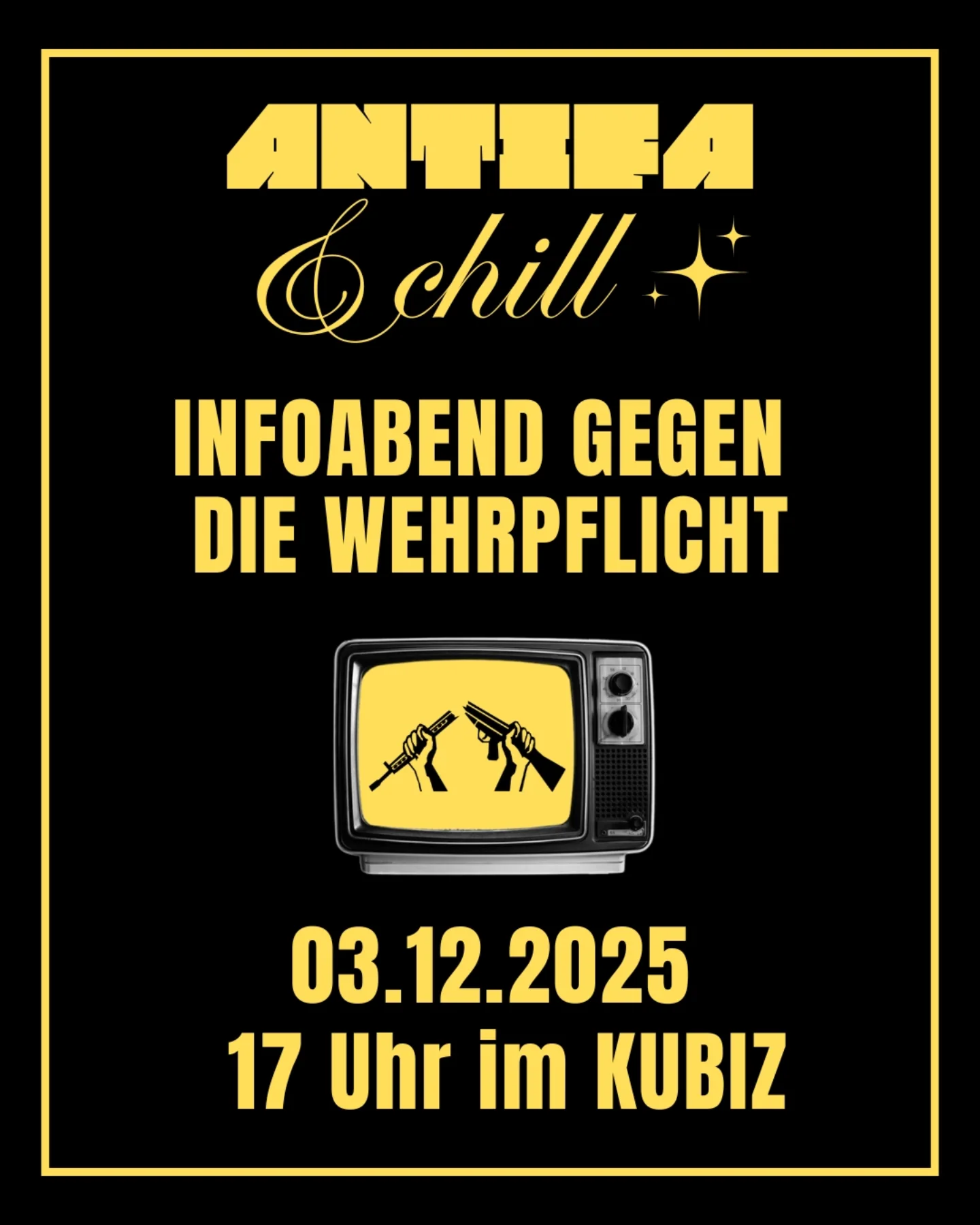 Darum gehts am 03.12 bei unserem ersten Antifa & Chill Event, ab 17:00 Uhr im KUBIZ.