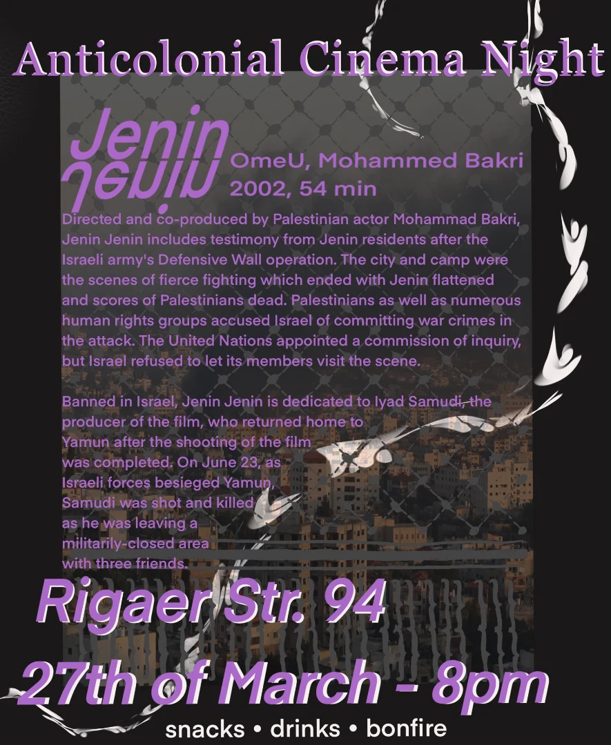 🎬✊🏾Anticolonial Cinema Night – „Jenin Jenin“✊🏾🎥