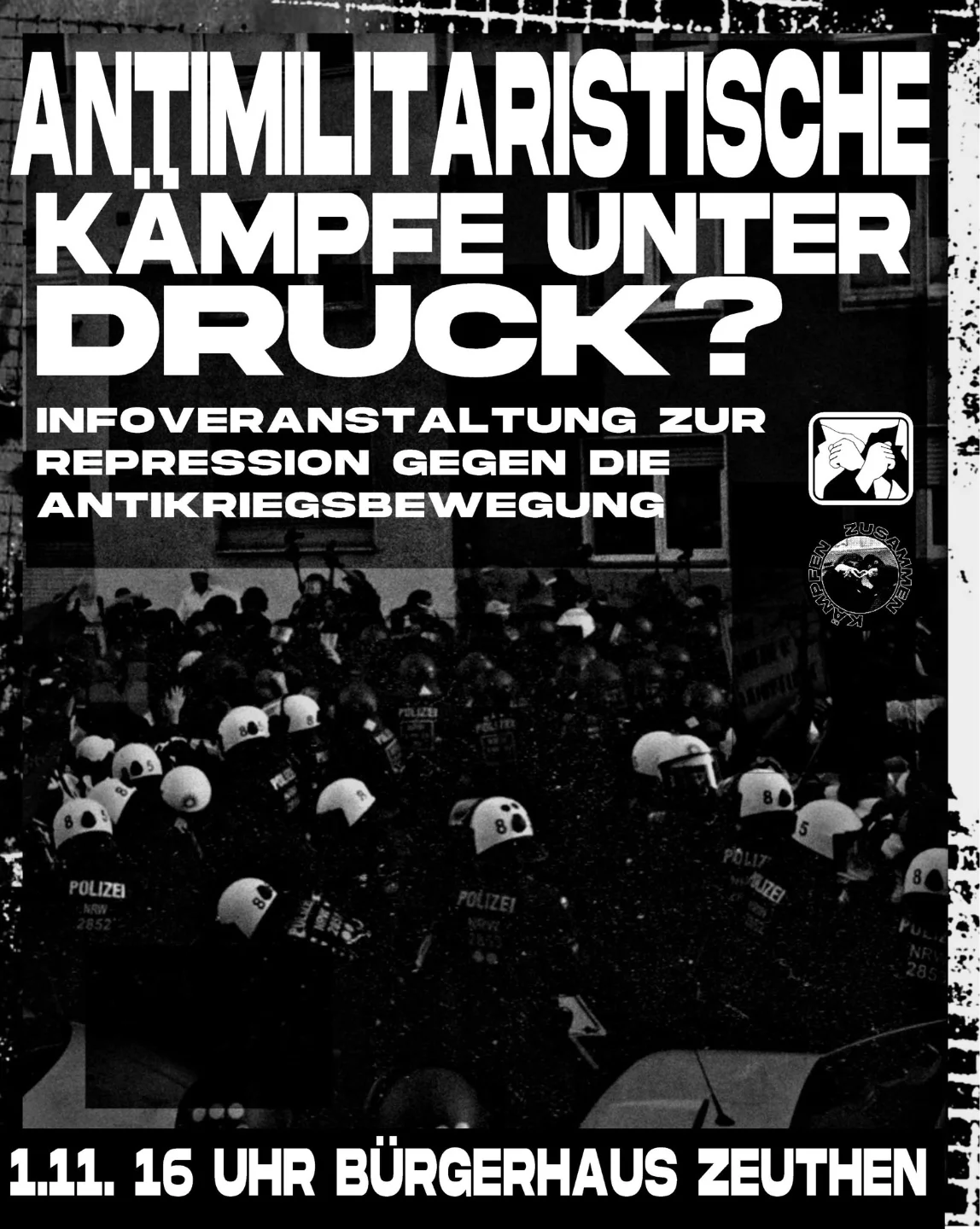 We have invited a speaker from the ‘Rheinmetall Entwaffnen’ campaign in Berlin and an activist from the solidarity structures of the ‘Ulm 5’ to talk about the current situation of repression and outline developments to date. We want to discuss together how we can counter the attacks of the repressive apparatus and how we can strengthen solidarity.