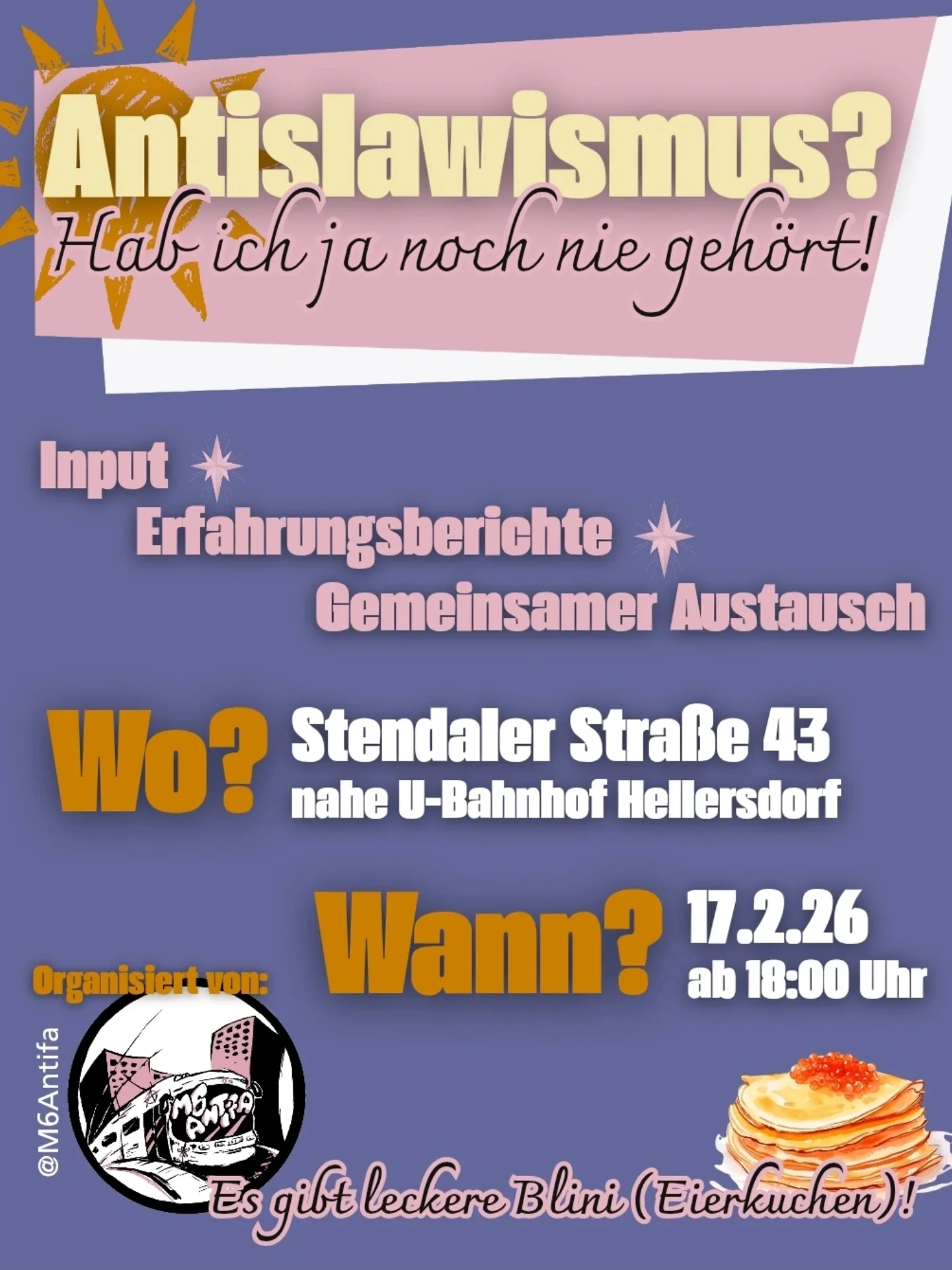Tuesday, 17.02.2026 | from 6:00 pm | Stendaler Straße 43, 12627 Berlin