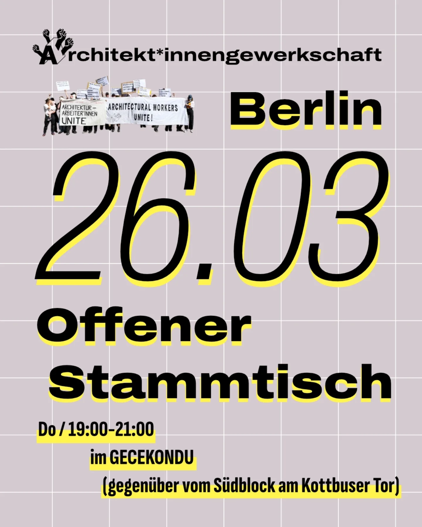 Have you also had enough of the exploitative working conditions in the architecture field and want to get collectively active in the Architects’ Union currently in formation?