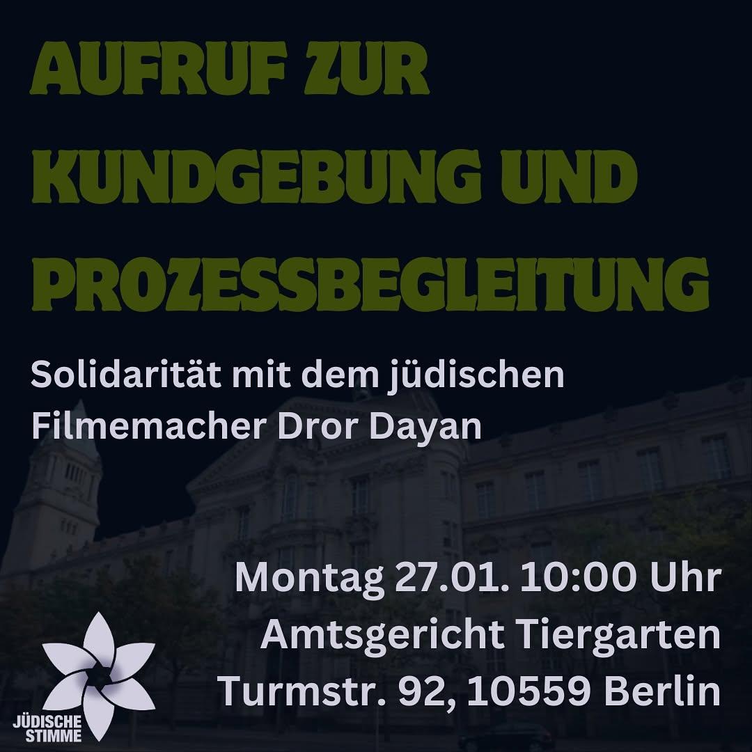 Call for rally and trial support: Solidarity with the jewish film-maker Dror Dayan!