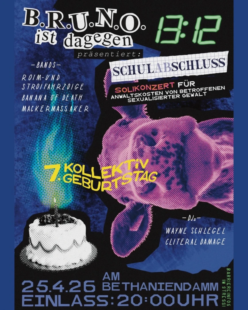 Am 25.04.2026 feiern wir mit euch unseren 7. Kollektivgeburtstag – gleichzeitig wird es eine Soli-Party für Anwaltskosten von Betroffenen sexualisierter Gewalt!