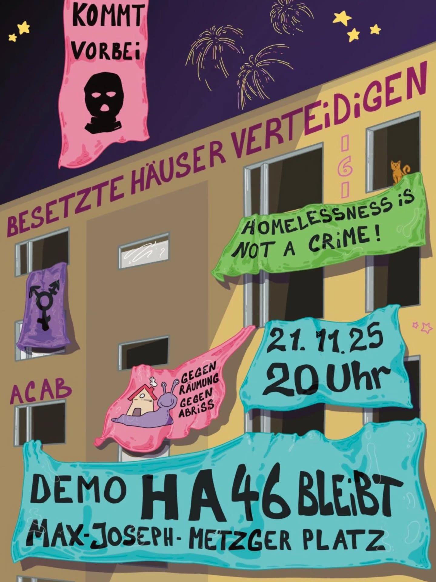 Die Bewohner*innen der HA46 zeigten sich widerständig solidarisch und wurden anschließend selber von den Bullen angegriffen.