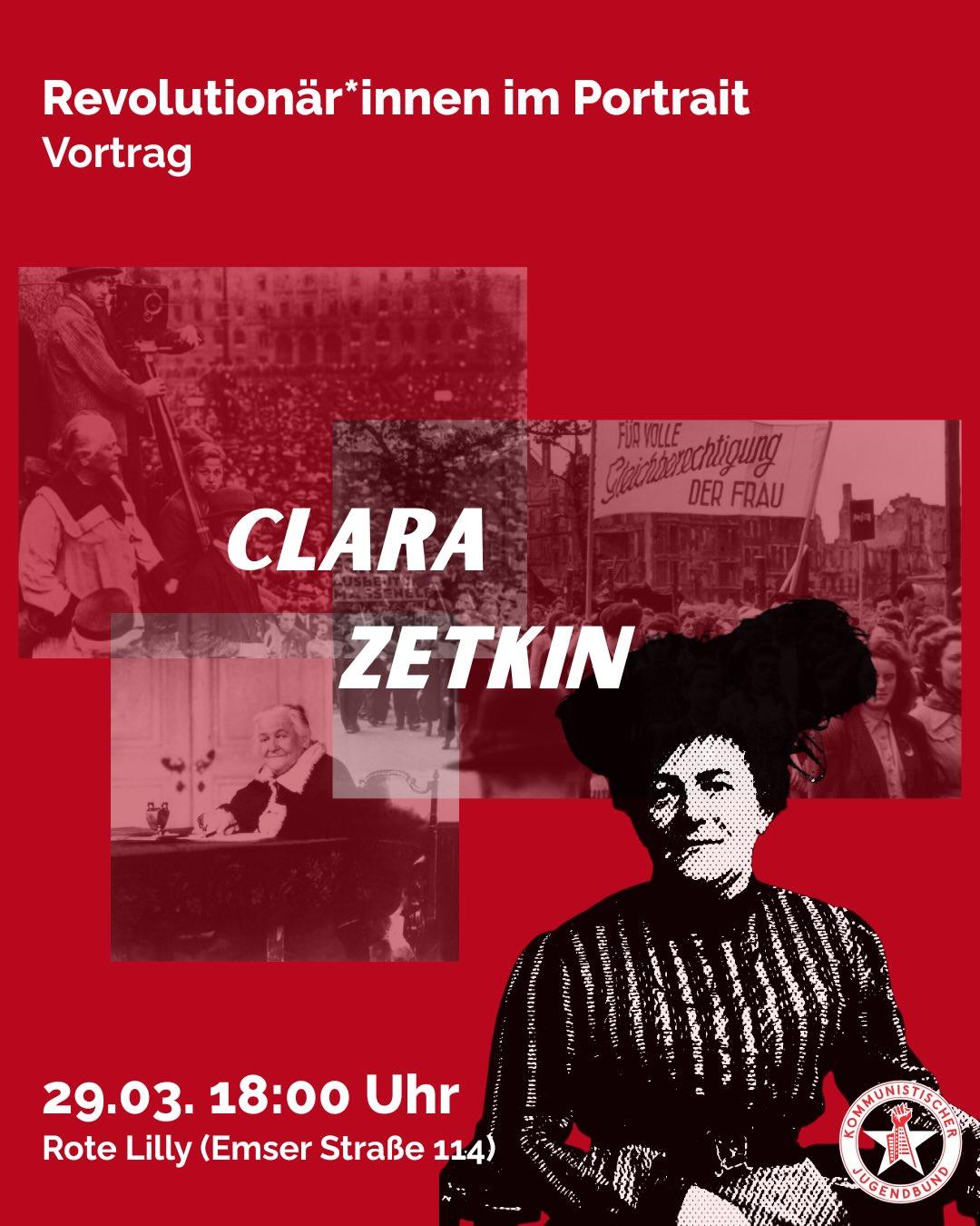 Kommt diesen Sonntag in die Rote Lilly, wenn ihr gemeinsam mehr über Clara Zetkin & die sozialistische Frauenbewegung erfahren wollt.