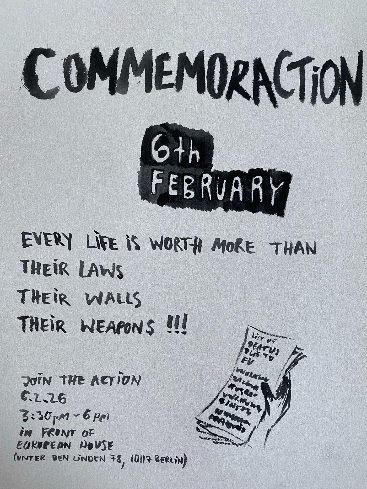 Wir werden am Freitag, dem 6. Februar – dem Weltgedenktag gegen tödliche Grenzpolitik – zusammenkommen, um all jener Menschen zu gedenken, die an den tödlichen EU-Grenzen und darüber hinaus ihr Leben verloren haben: