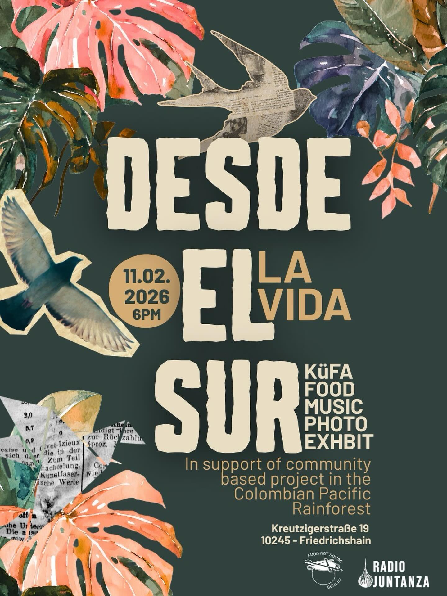 Food not Bombs Berlin lädt euch zu einem solidarischen Abend für Radio Juntanza ein, eine von Frauen aus dem Globalen Süden gegründete und geleitete Organisation, die Initiative des Wiederstands, der Fürsorge, der Anerkennung sowie der biokulturellen Bewahrung von Territorien und Ökosystemen aus einer ökofeministischen Perspektive fördert.