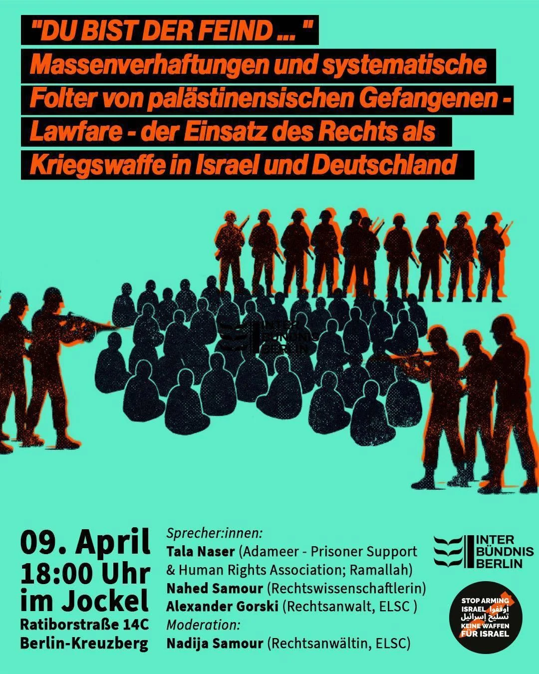 „Massenverhaftungen und systematische Folter von palästineschen Gefangenen – lawfare- der Einsatz des Rechts als Kriegswaffe in Israel und Deutschland“