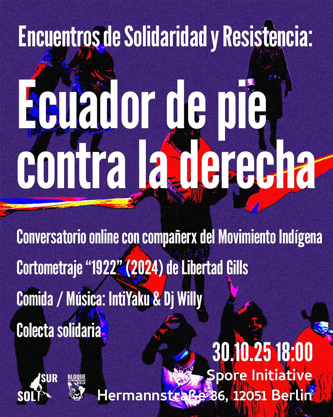 Während dieses Treffens werden wir die aktuelle politische Lage diskutieren und die Menschenrechtsverletzungen der Drogenregierung von Daniel Noboa international anprangern.