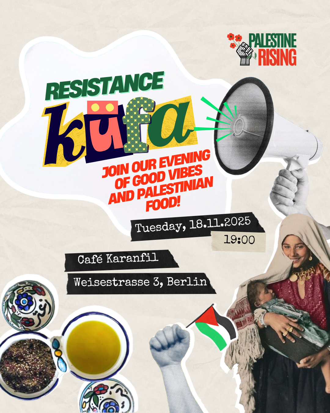 📣💚 RESISTANCE KÜFA — Ein Abend voller guter Vibes und palästinensischem Essen!