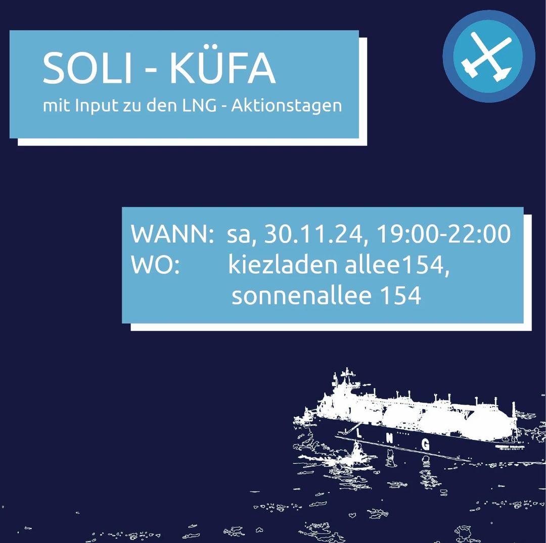 Come along to Kiezladen Allee 154 on 30.11.24 at 07:00 pm to join us for a cozy evening with delicious Küfa food and an informative talk.