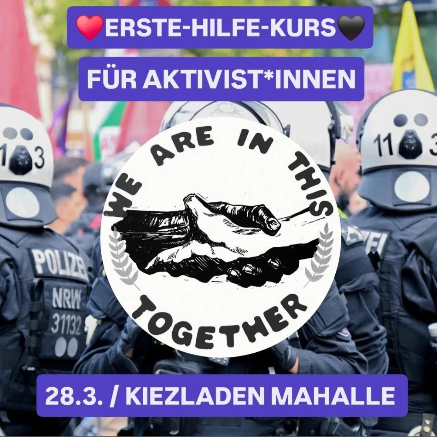 In diesem Kurs für Aktivist*innen wollen wir uns gemeinsam der ersten Hilfe bei Demos, Aktionen und im Alltag nähern.