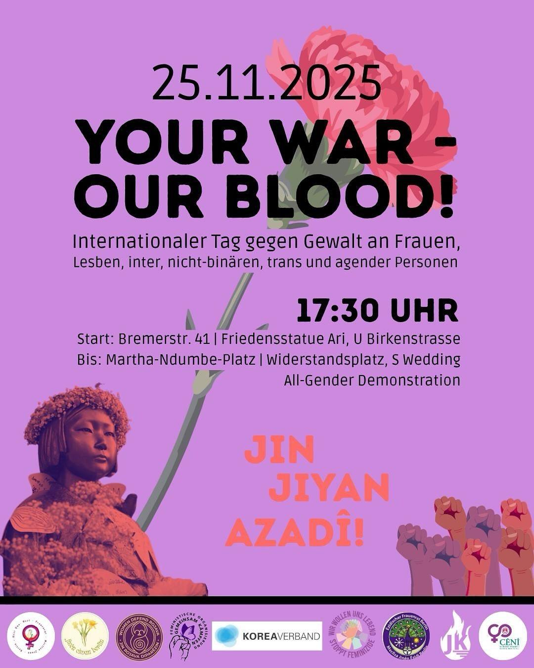 To this day, a femicide takes place almost every day in Germany, and the trend is rising. Whether in our own homes or in war: patriarchal violence is systematic! 💀