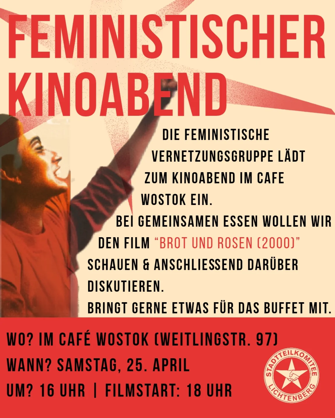Die feministische Vernetzungsgruppe lädt zum Kinoabend im Cafe Wostok ein.