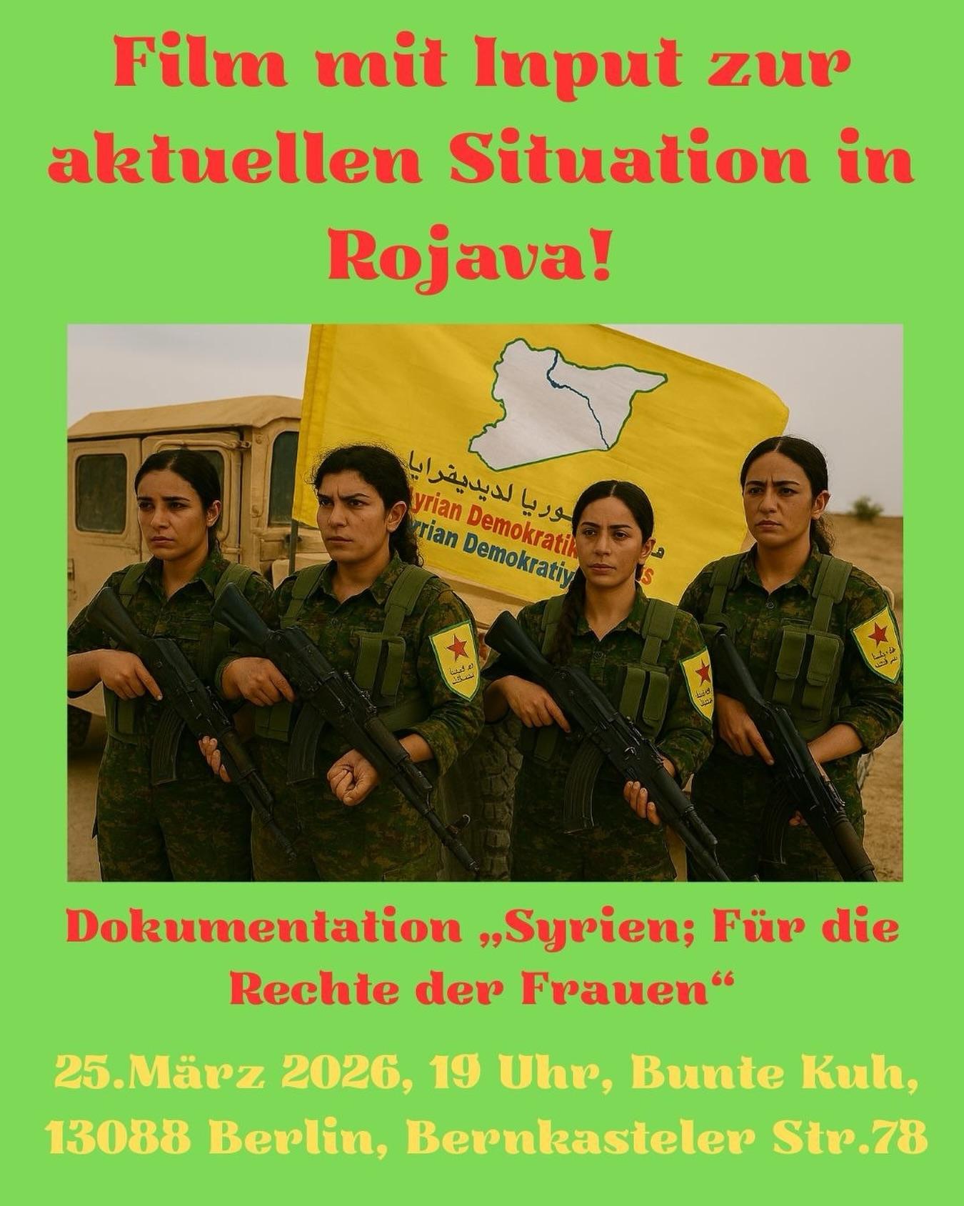 Am 25.03.2026 veranstalten wir einen Filmabend inclusive Input zur aktuellen Situation in Rojava.