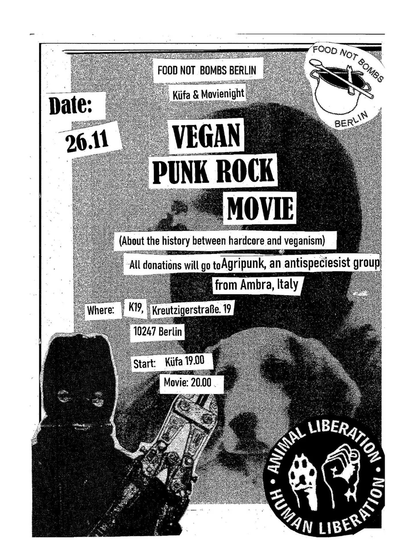 Moviescreening of the „Vegan Punk Rock Movie“ and Küfa for Agripunk from Italy.