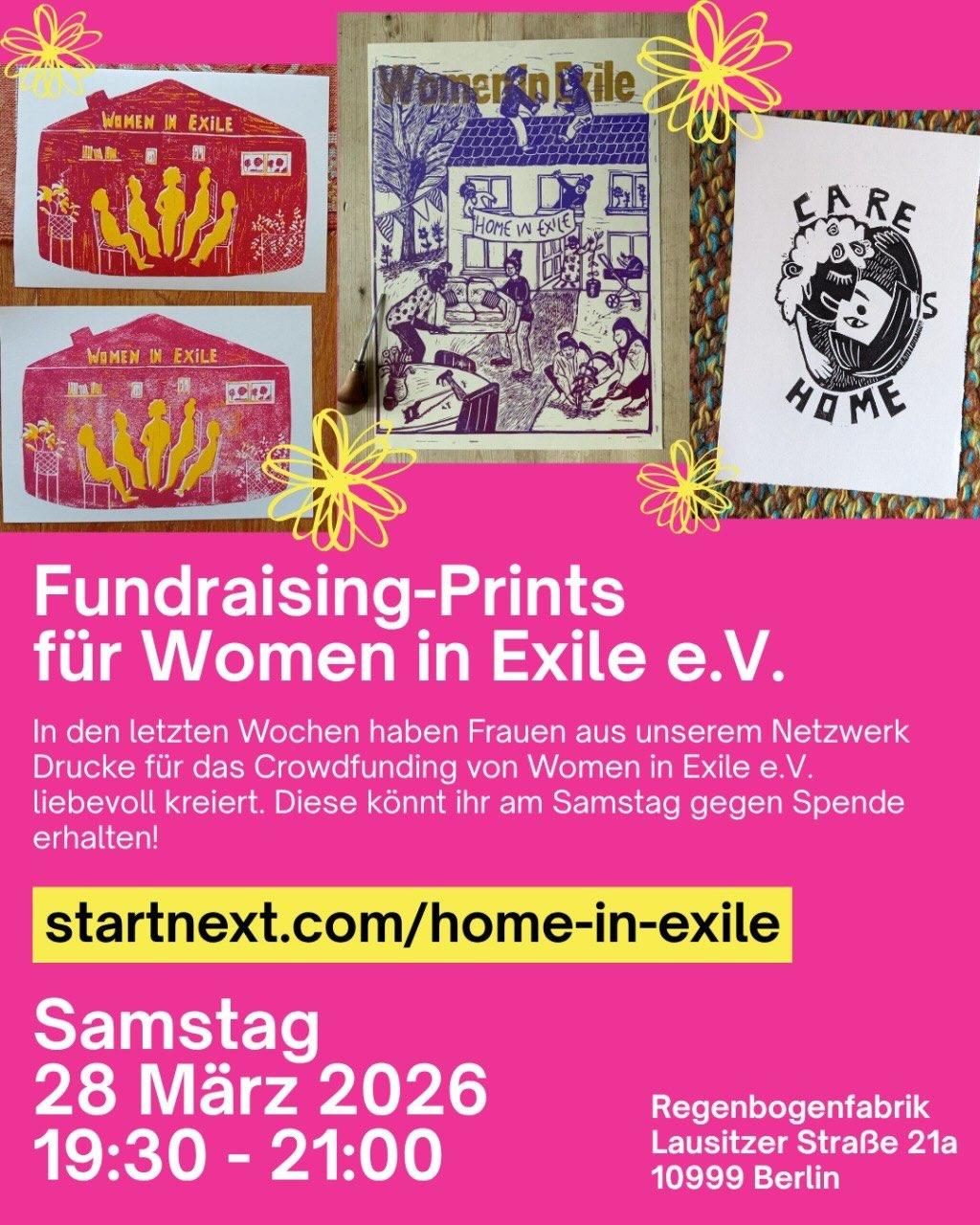 💗 Am kommenden Samstag in der Regenbogenfabrik @rbf_xberg könnt ihr die wichtige Arbeit @womeninexile kennenlernen und unsere Drucke gegen Spende erhalten. Alle Spenden fließen direkt an die Crowdfunding-Kampagne.