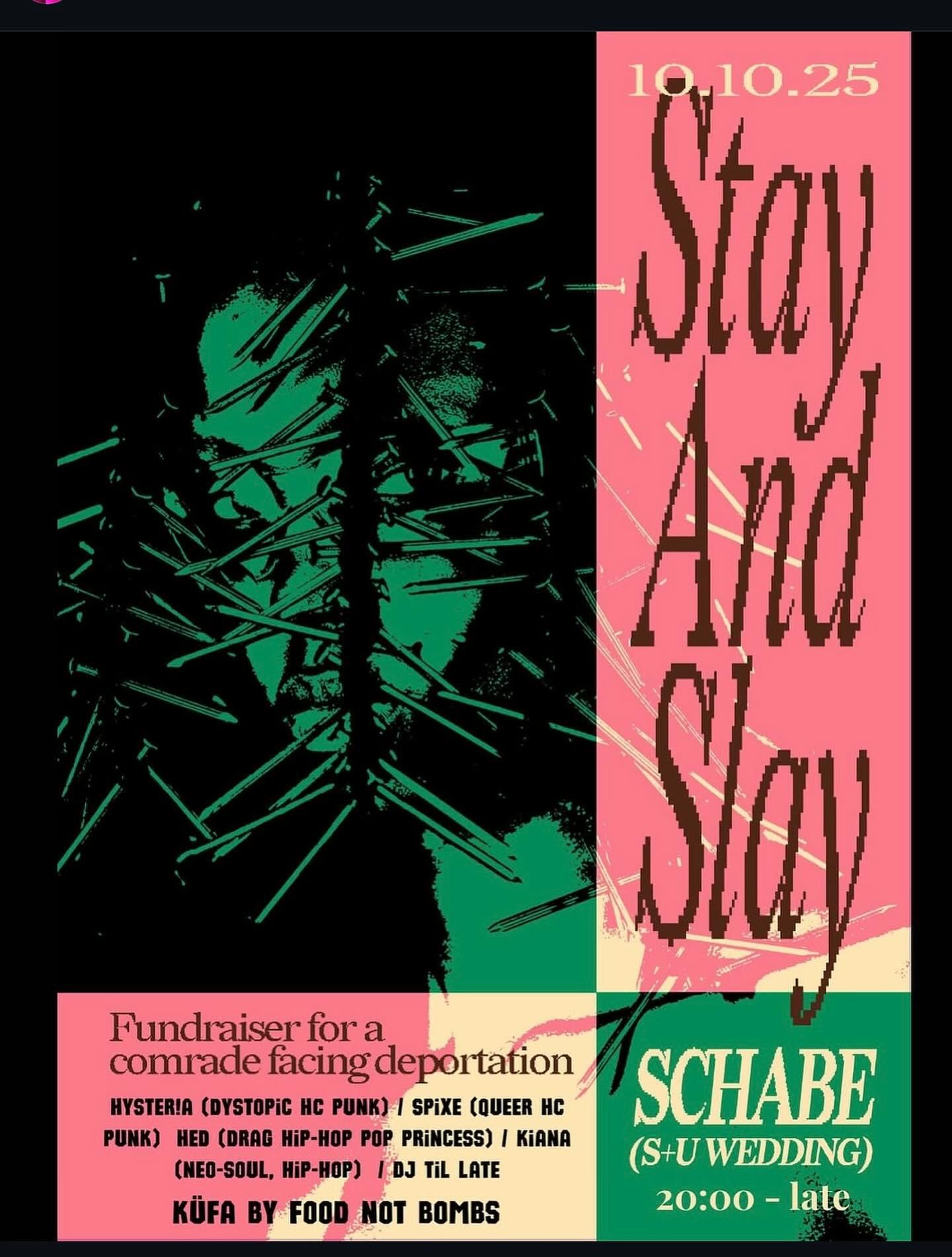 🚨 Am 10. Oktober ist es Zeit für Stay and Slay im Schabe (S+U Wedding)!
