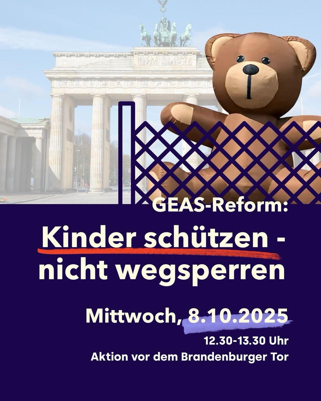 Kommt am nächsten Mittwoch zum Brandenburger Tor und setzt mit uns ein Zeichen für den Schutz geflüchteter Kinder!