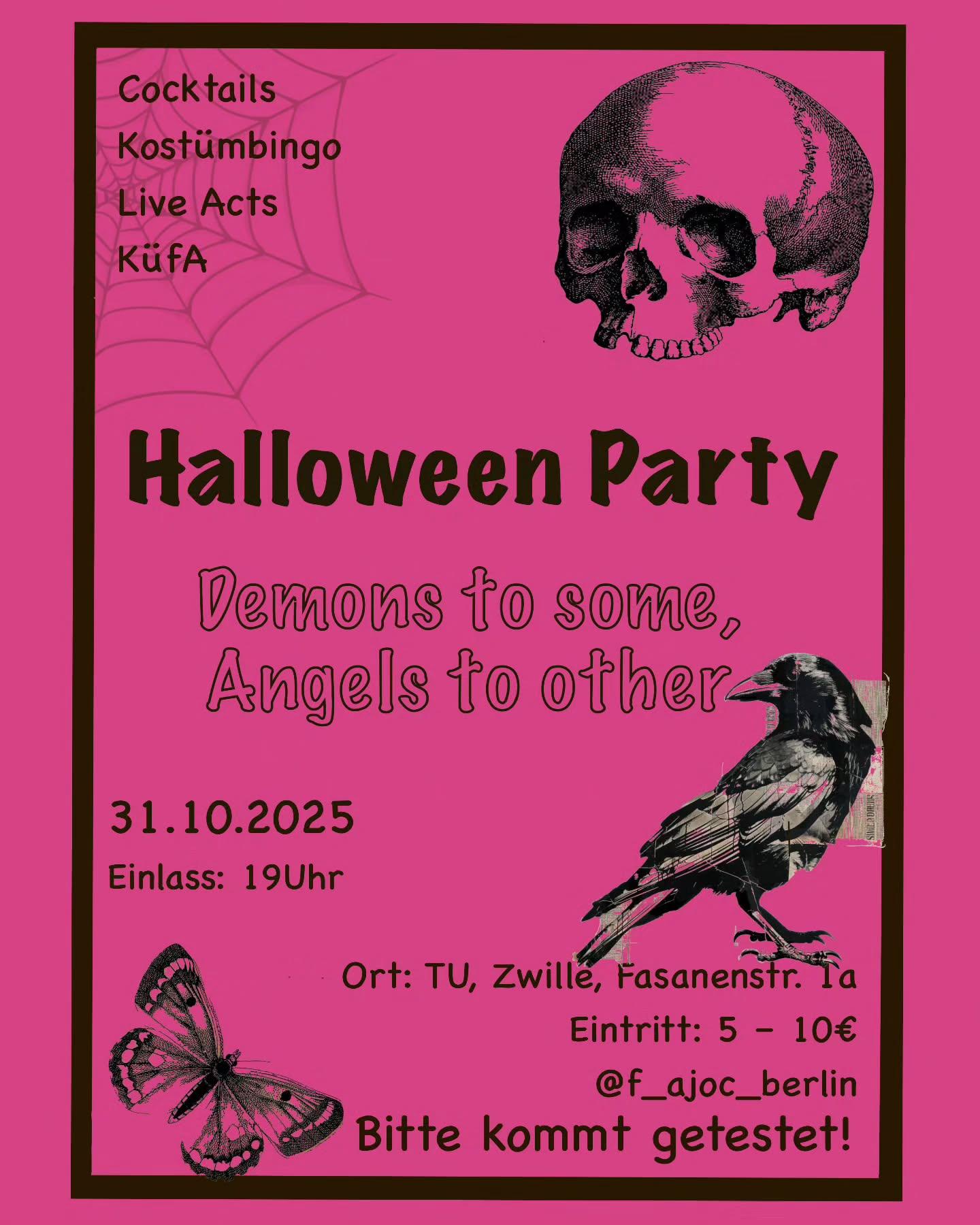Ladet also all eure Genossis, Mitbewohner*innen, Friends und Geschwistis ein, wir freuen uns auf schaurig-schöne Kostüme.