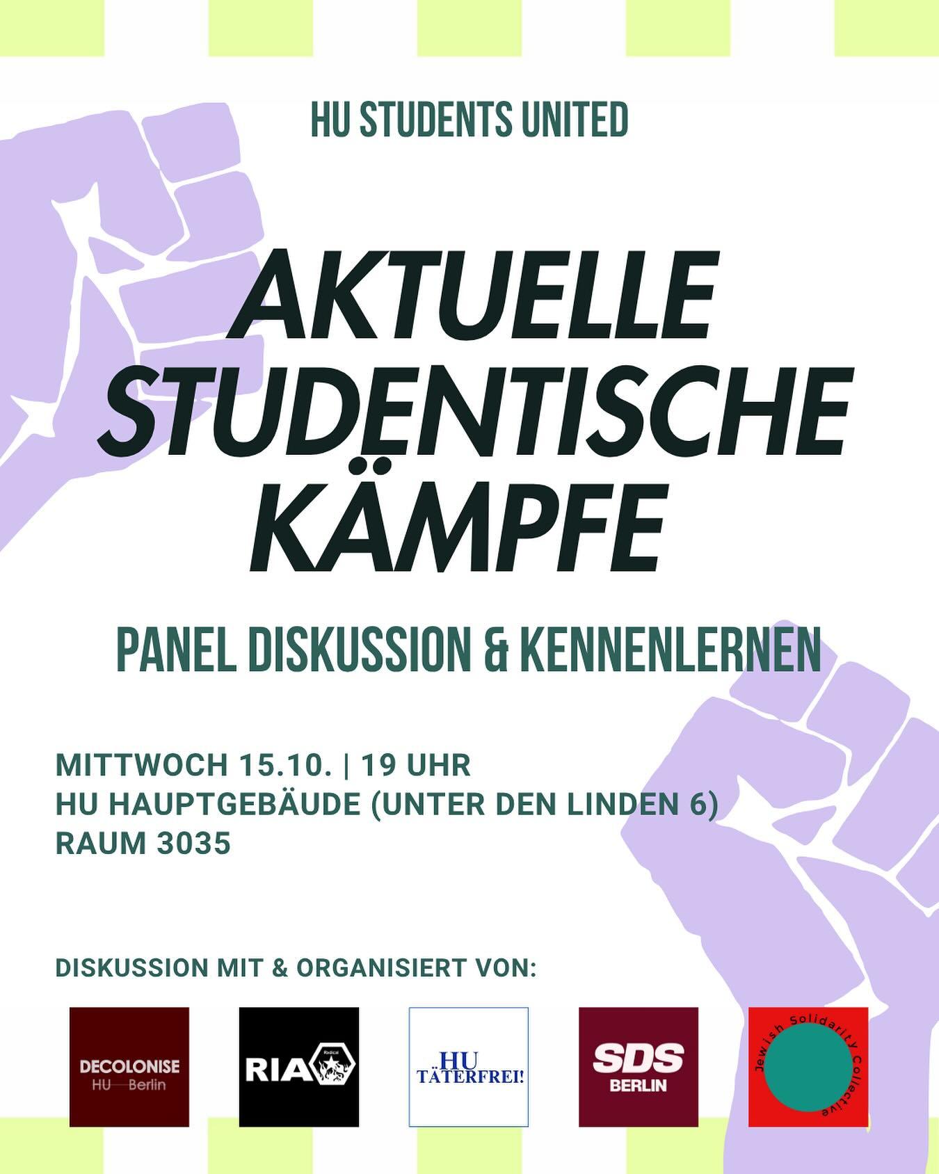 The Socialist Democratic Student Association, Risse im Asphalt, Decolonize HU, the Jewish Solidarity Collective, HU Täterfrei, and People’s Bridge are also apart of it.