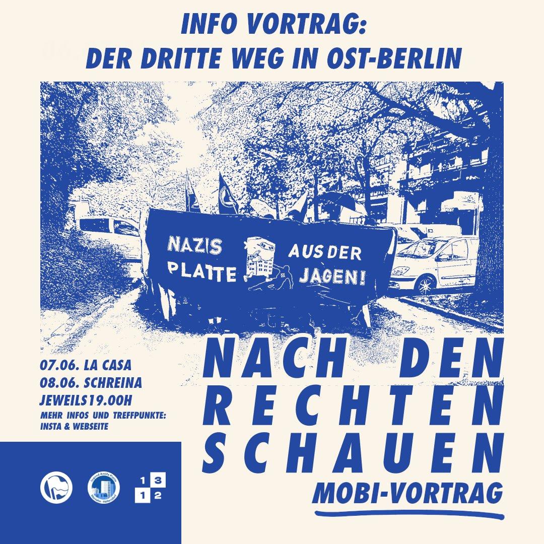 We want to clarify these questions in our info talk and discuss them with you. We will also talk about the planned anti-fascist demonstration „Nach den Rechten schauen 2“ on 6 July 2024 through Hellersdorf.
