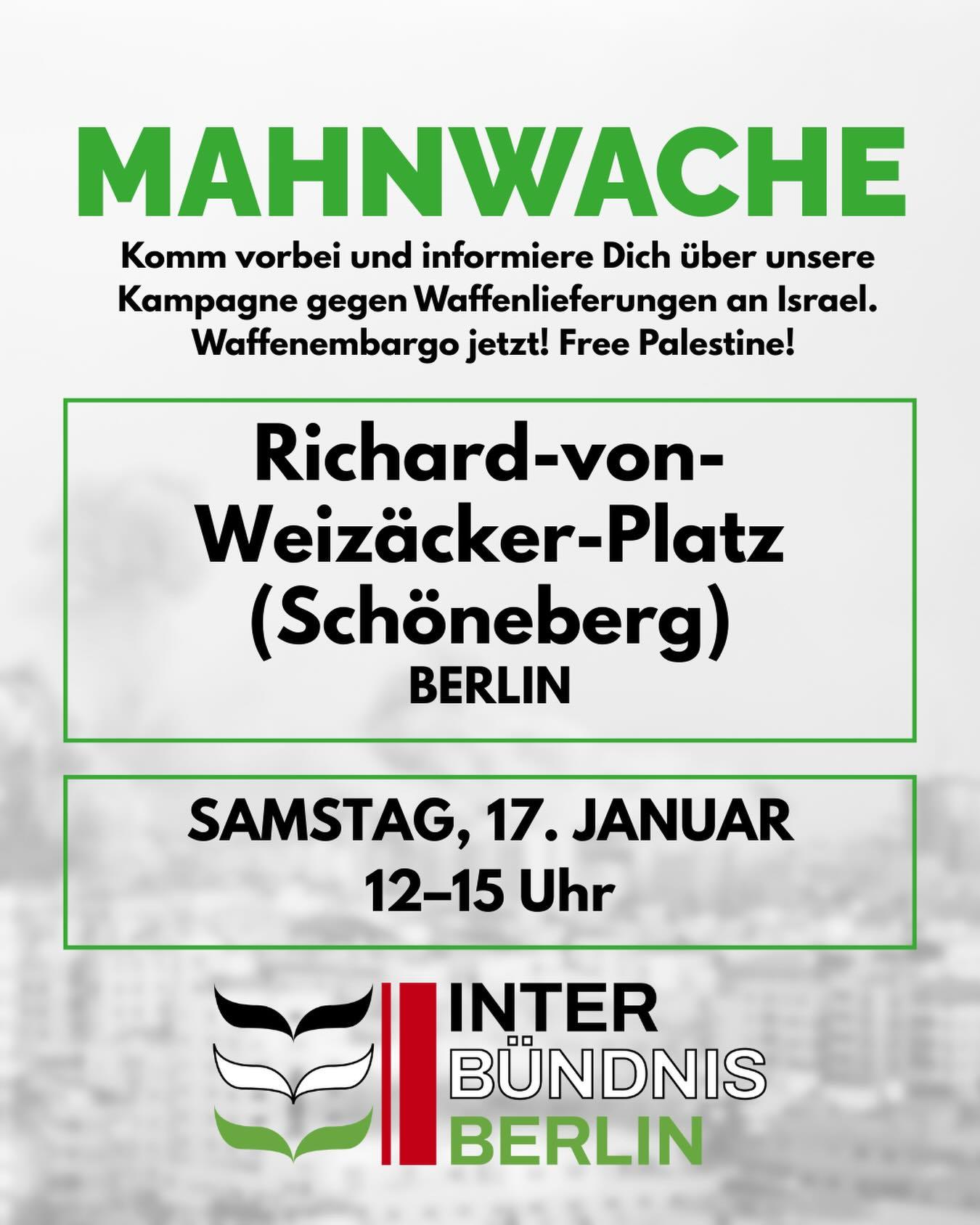 🇵🇸 Kommt zur Mahnwache und informiert Euch über unsere Kampagne für ein Waffenembargo gegen Israel!