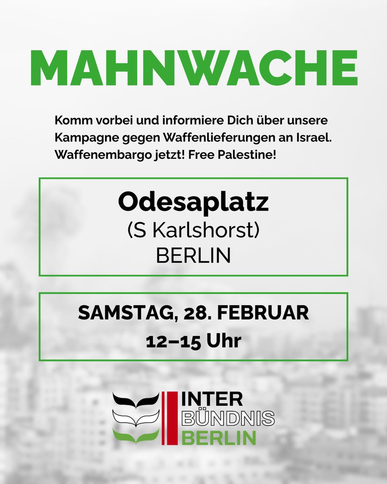 🇵🇸 Kommt zur Mahnwache und informiert Euch über unsere Kampagne für ein Waffenembargo gegen Israel!