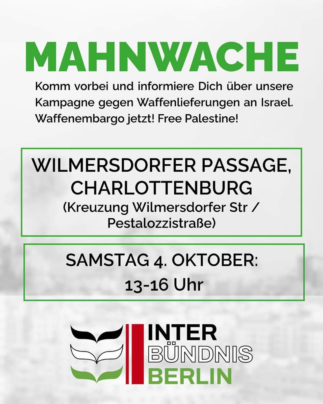 🇵🇸 Kommt zur Mahnwache und informiert Euch über unsere Kampagne für ein Waffenembargo gegen Israel!