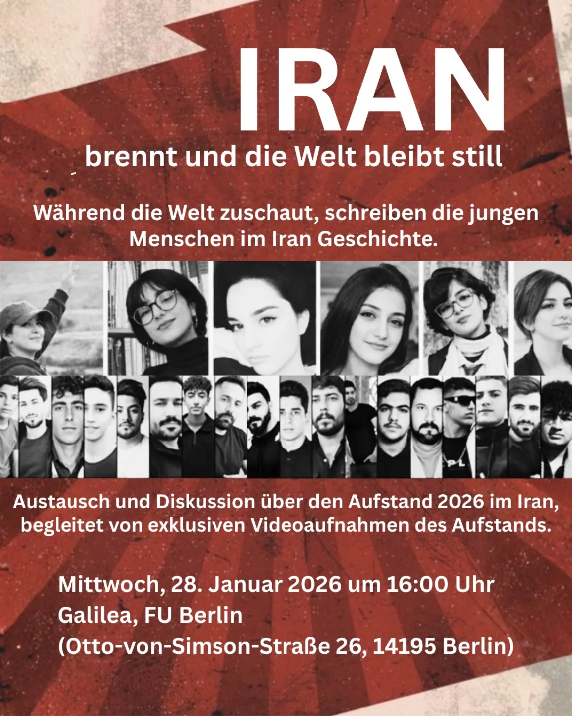 Austausch und Diskussion über den Aufstand 2026 im Iran, begleitet von exklusiven Videoaufnahmen des Aufstands.