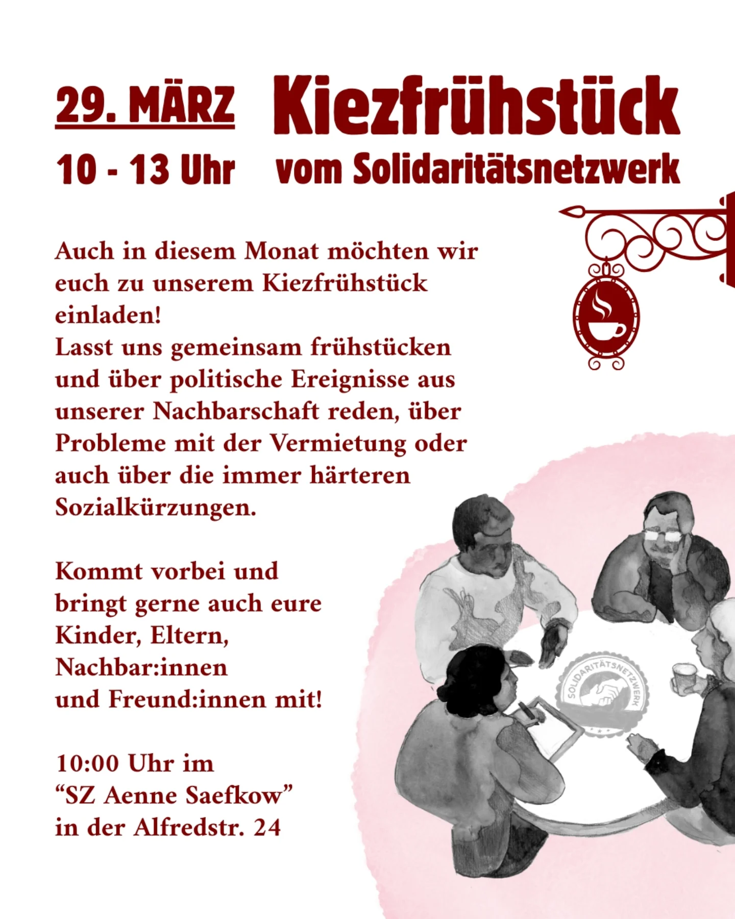 Kommt vorbei zu unserem Kiezfrühstück im März.