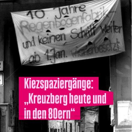 Andy, waschechter Kreuzberger, „ü60“ und seit 20 Jahren im Regenbogenfabrikkollektiv, wird euch durch SO36 führen und versuchen, euch „das Gefühl und das Leben damals“ nahe zu bringen.