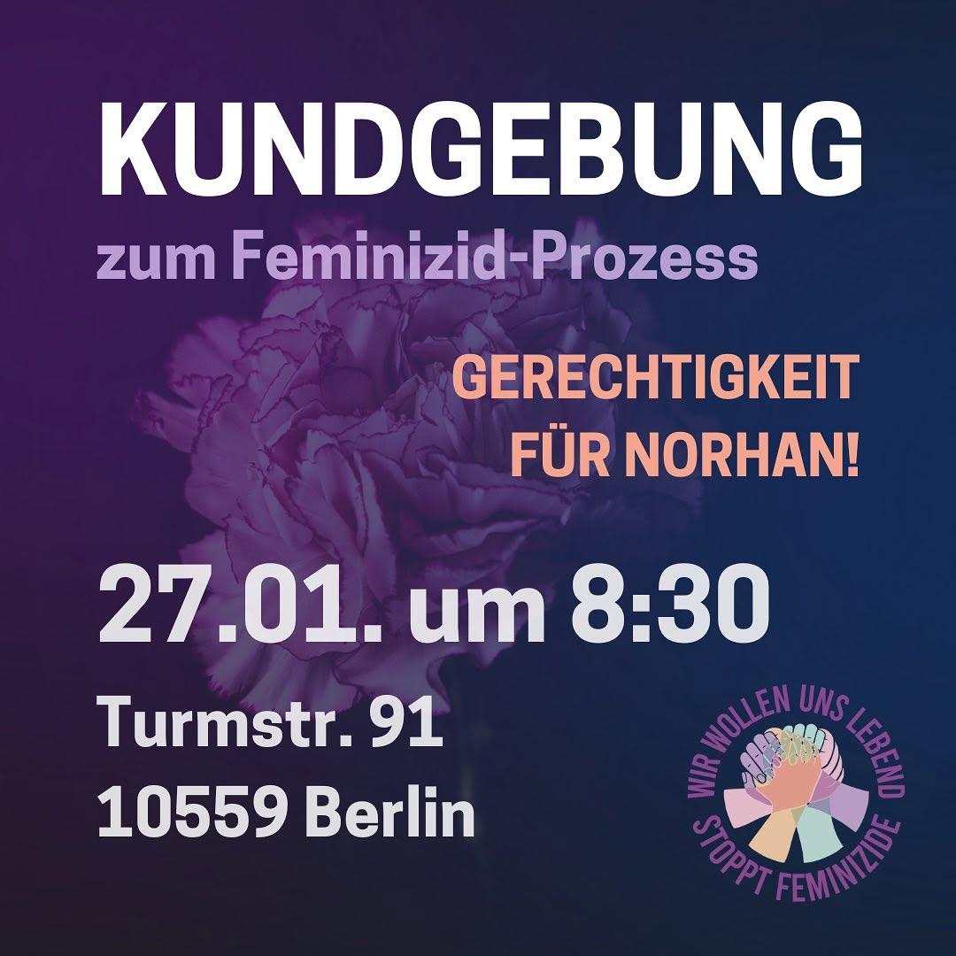 Der Gerichtsprozess zu dem Feminizid an Norhan, die am 28.08.24 von ihrem Ex-Partner ermordet worden ist, beginnt am 27.01.25.