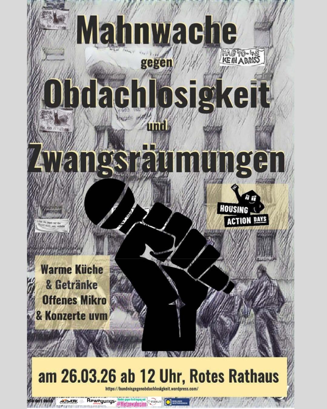 8. Mahnwache gegen Obdachlosigkeit & Zwangsräumungen