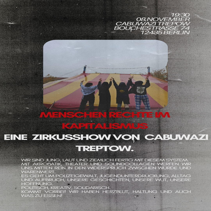 Saturday, 08.11.2025 | 7:30 p.m. – 9:00 p.m. | Cabuwazi Treptow, Bouchéstraße 74, 12435 Berlin