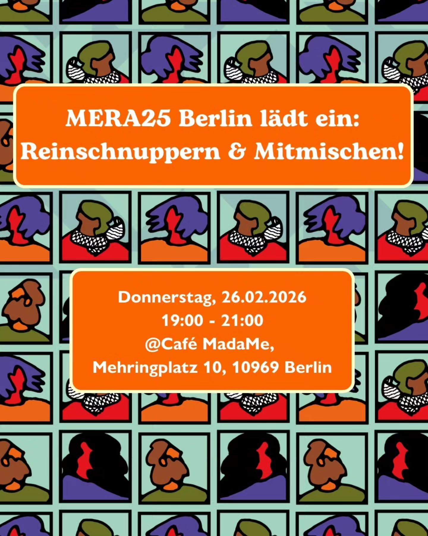 We at MERA25 Berlin invite you to a relaxed gathering to get to know each other, exchange ideas, and make plans.