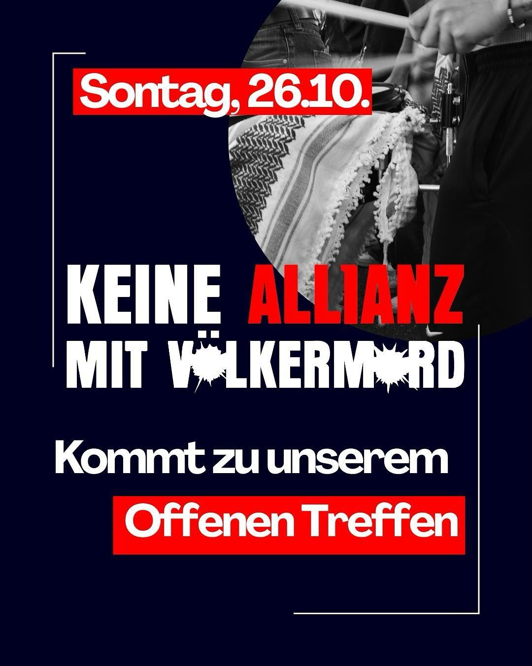 Arrival: 📍Location on request – Instagram @keineallianzmitvoelkermord or email: https://keineallianzmitvoelkermord.org/de/kontakt
