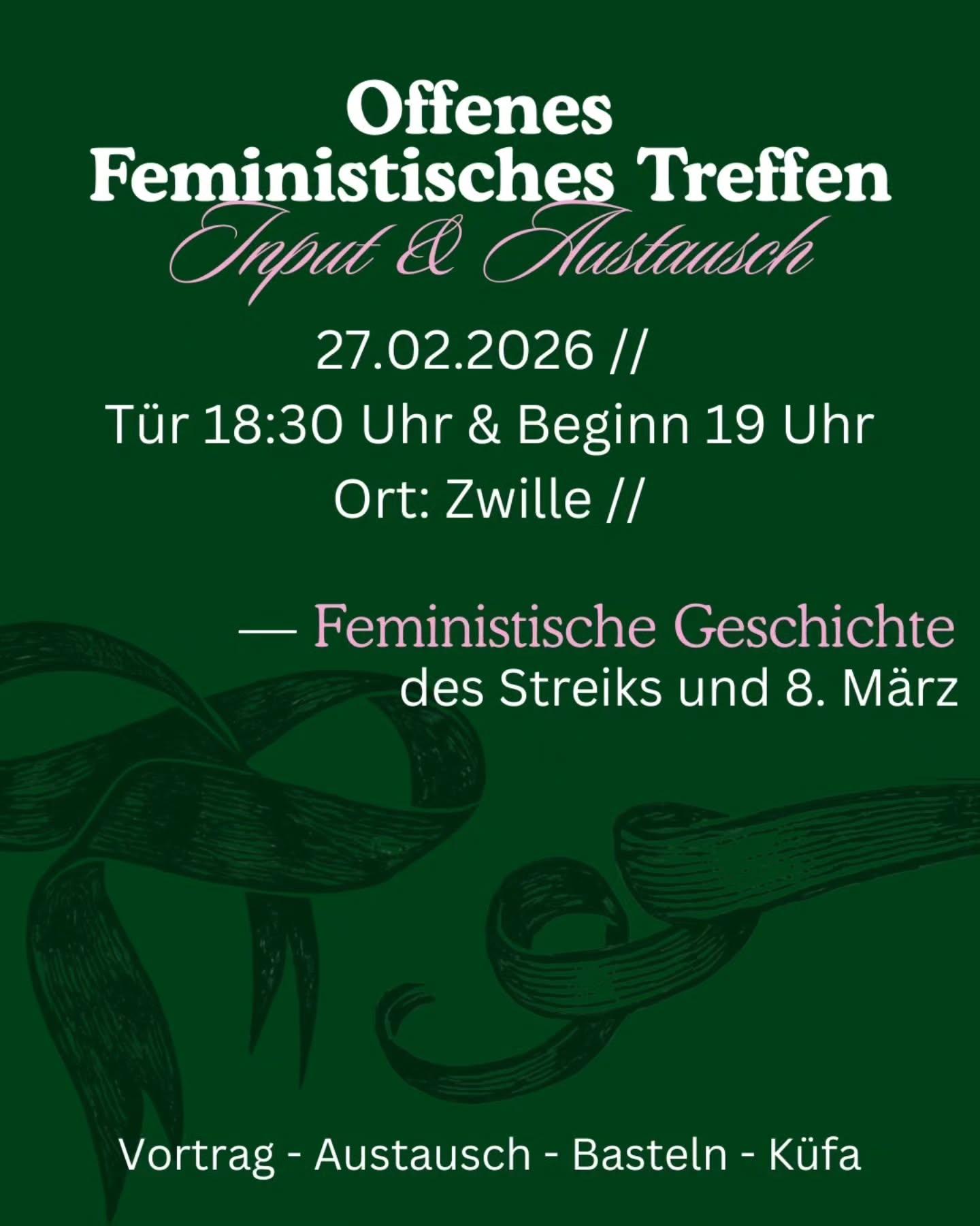 Bei unserem kleinen Input wird es wieder um die Historie des 8. März gehen um uns regional weiterzubilden, aus der Vergangenheit zu lernen und darüber zu reden, wie wir unsere Gegenwart gestalten.