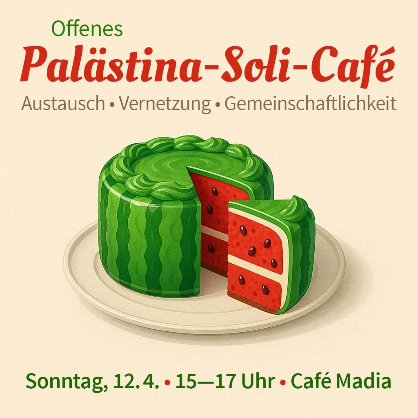 am Sonntag ist wieder unser nächstes Palästina-Soli-Café, und wir möchten euch herzlich einladen!