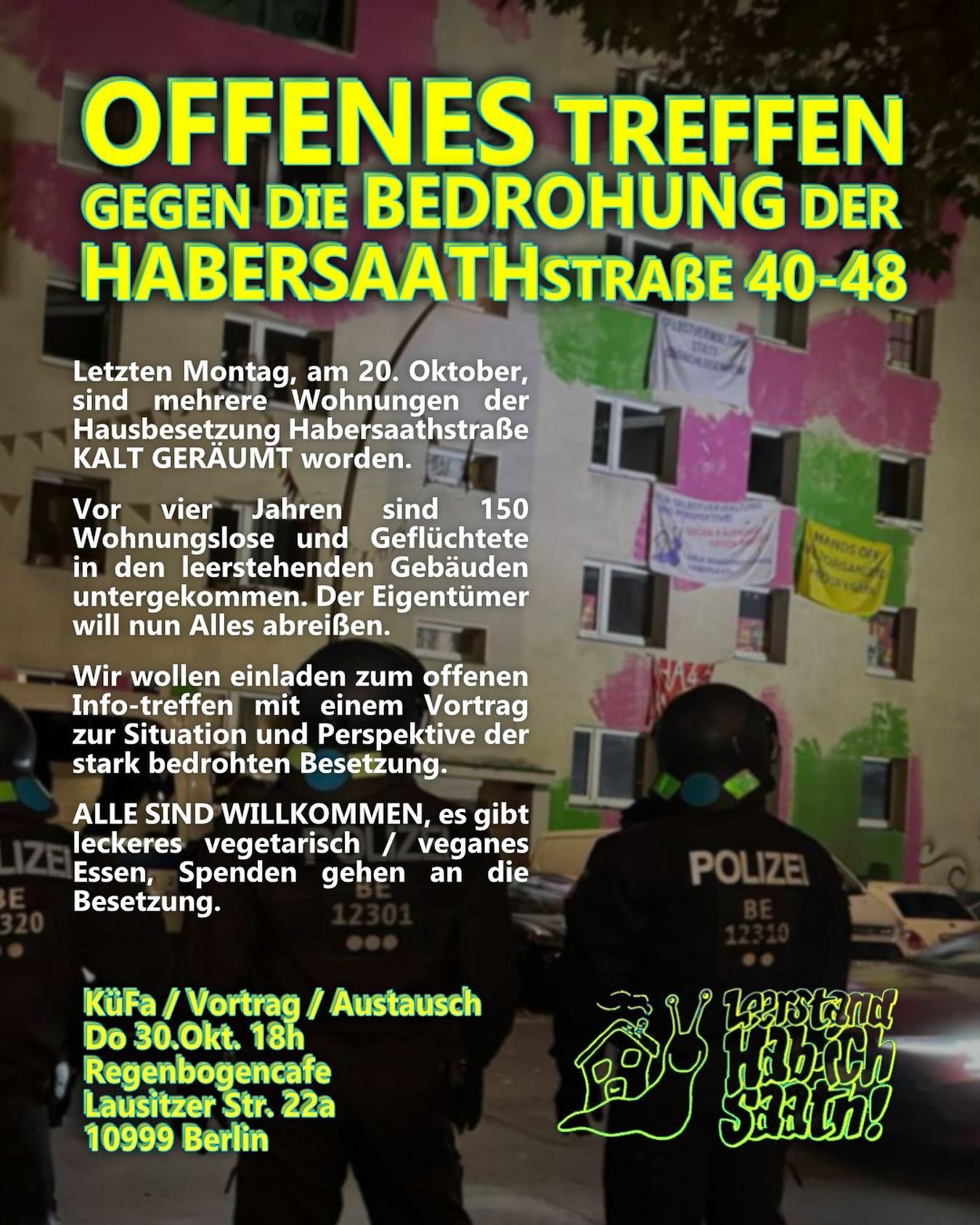 🍽 Open meeting: Against the threat to Habersaathstraße 40-48 📜