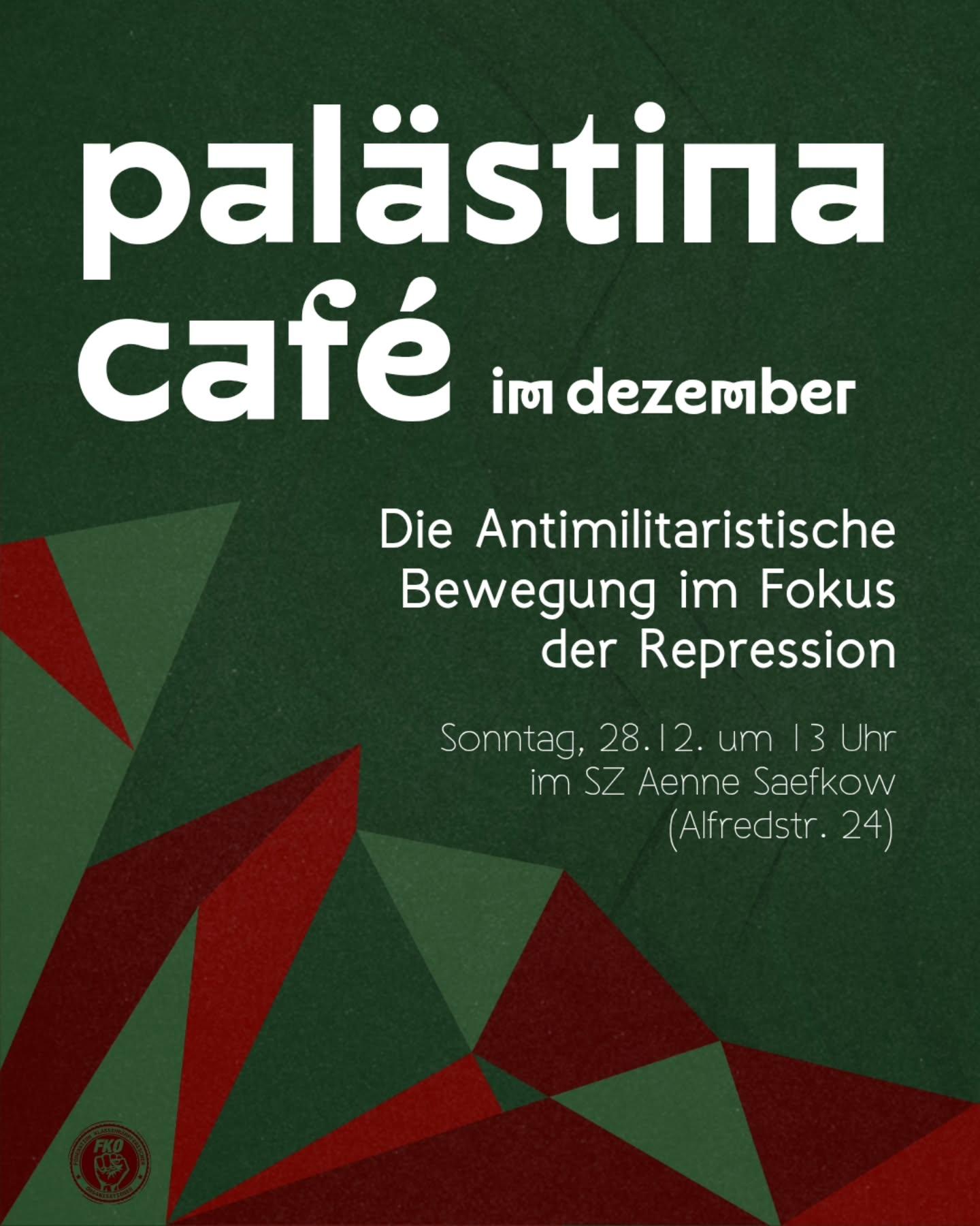 In our Palestine Café in December, we want to discuss why the anti-militarist movement is so much the focus of repression.