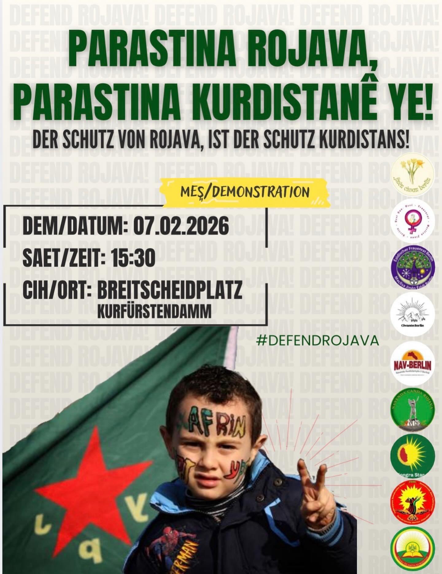 Kommt alle mit uns auf die Straße und steht für ein freies Rojava ein.✌️