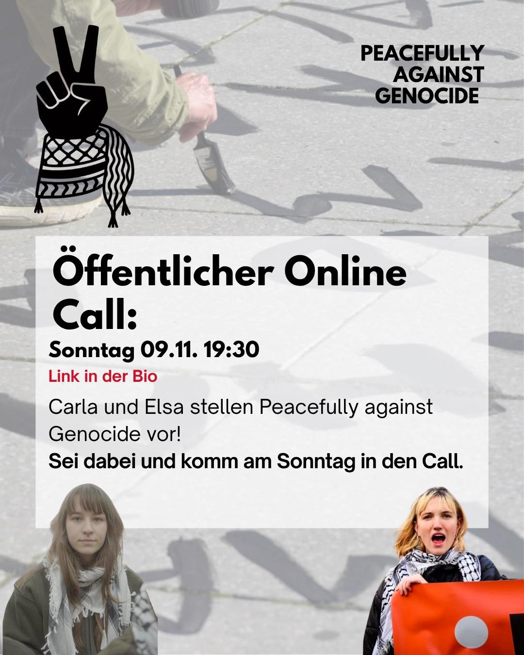 ❤️Carla and Elsa will introduce Peacefully against Genocide and talk about how we can take action together against German and Austrian complicity!