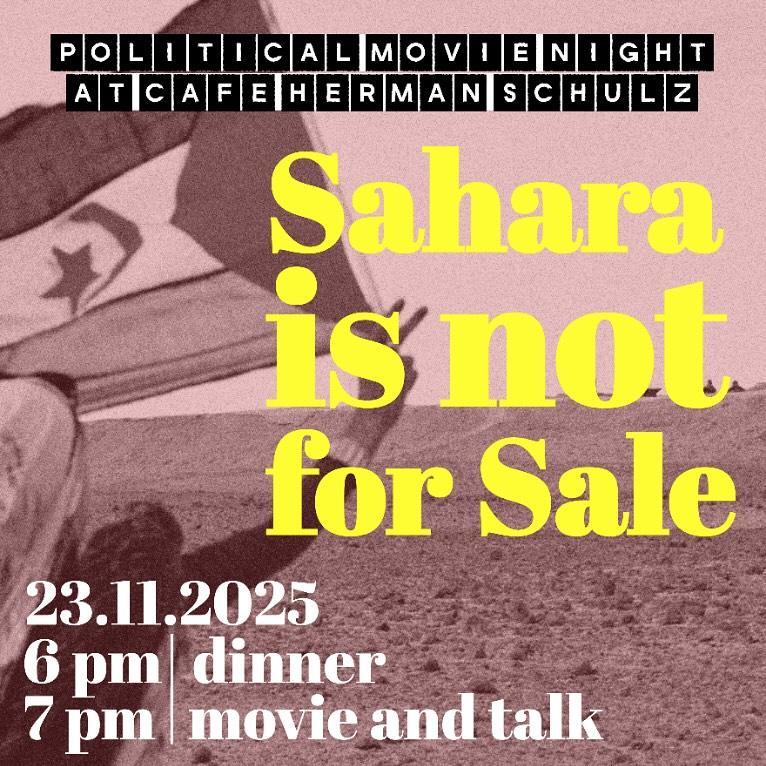 For November, as an extension of the week-long activities in solidarity with Western Sahara and the half-century resistance of the Sahrawi people, we will show Sahara Is Not For Sale.