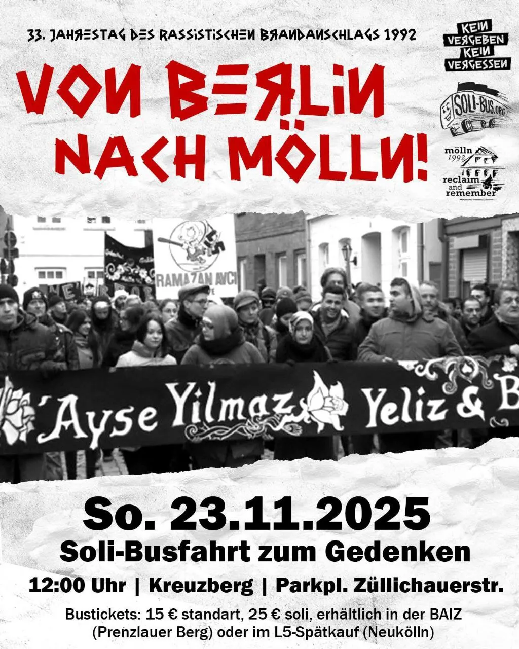 Together from Berlin to Mölln to commemorate the victims of the racist attack in Mölln in 1992.