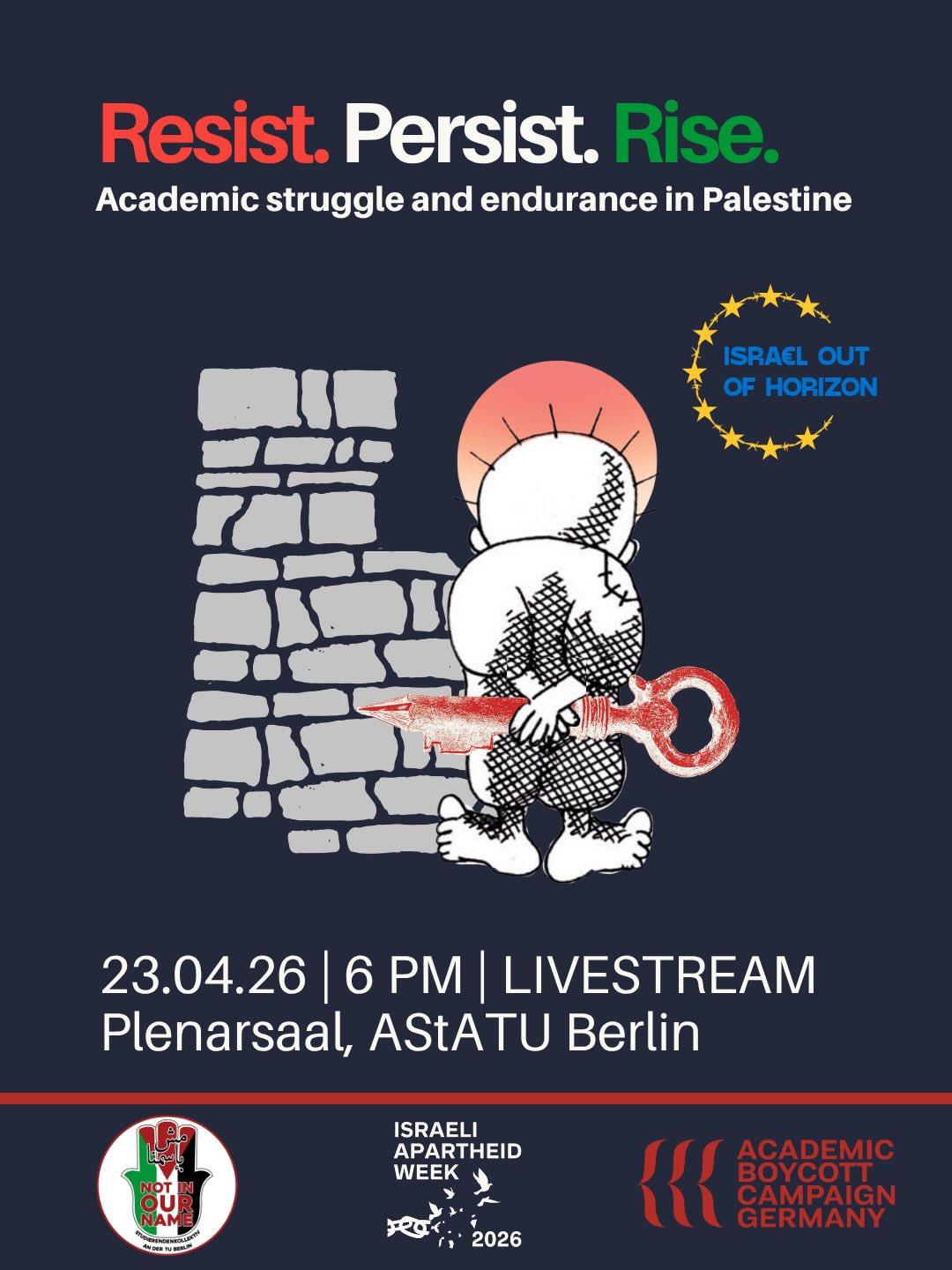 Die Veranstaltung ist Teil der Kampagne „Israeli Academic Boycott“ in Deutschland und der Initiative „Israel out of Horizon“ in Europa und wird europaweit gestreamt.