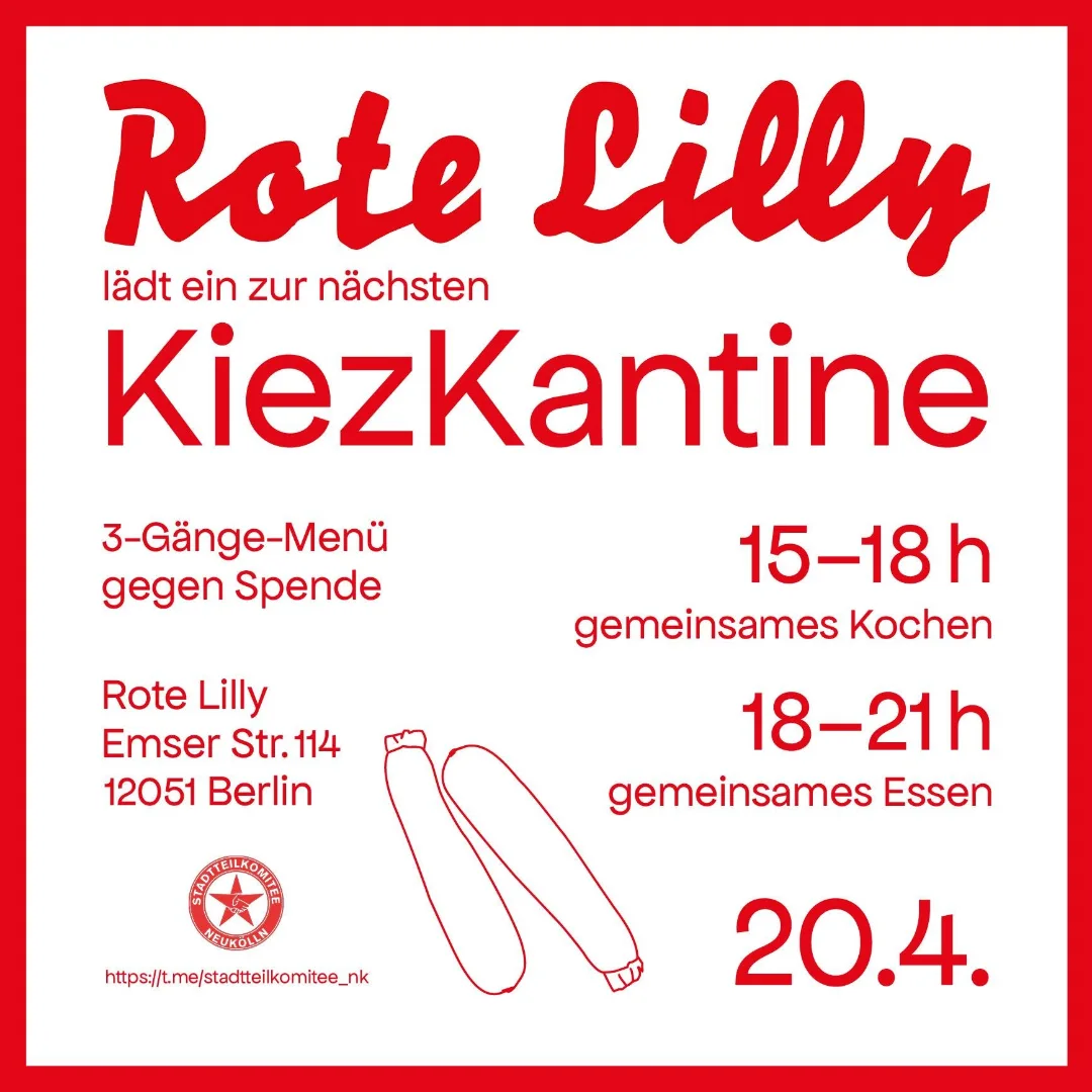 Montag, 20.04.2026 | ab 15:00 Uhr | Rote Lilly Emserstraße 114 12051 Berlin